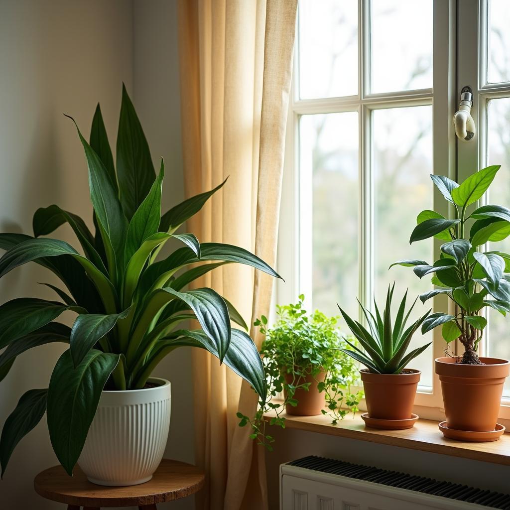 – Tip: Place plants near windows with sheer drapes or in rooms where ambient light naturally occurs (like living rooms).