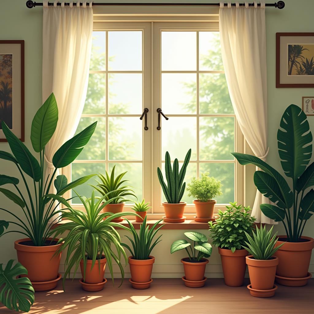 Example: A south-facing window filtered by sheer curtains is ideal.