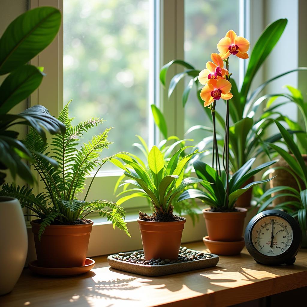 – High Humidity (70-90%): Orchids, ferns, peace lilies
