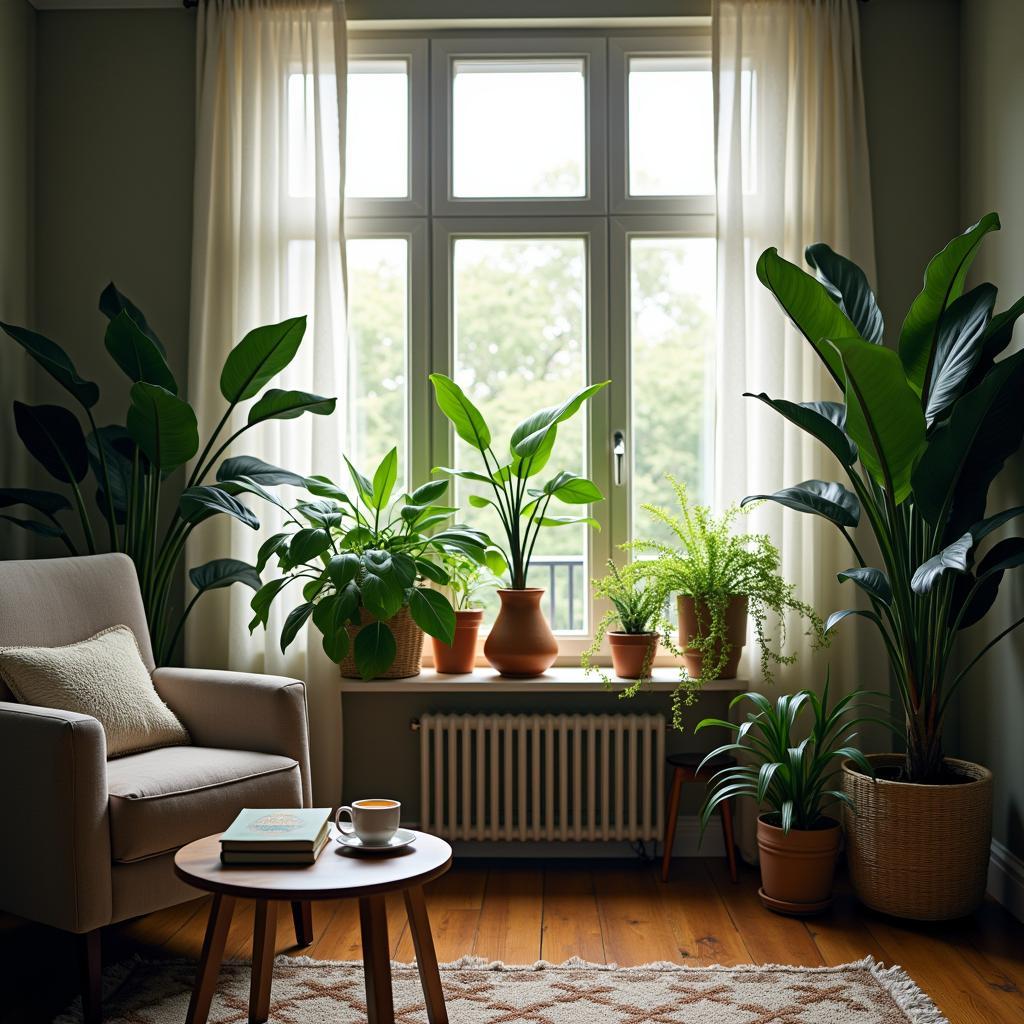 Example Tip: Use sheer curtains to diffuse sunlight in rooms where natural light is available, making it more conducive for low-light plants.