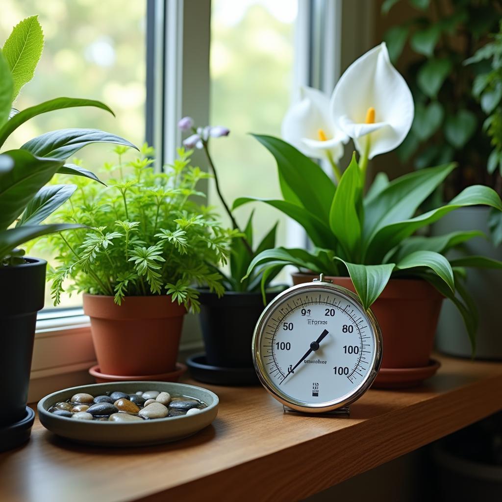 – Tropical plants (like ferns and peace lilies) thrive at 60-80% humidity.