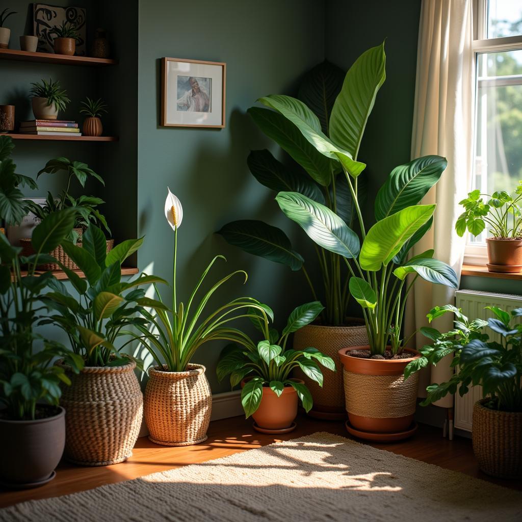 – Peace Lily (Spathiphyllum): Elegant and effective at purifying air while doing well in shadows.