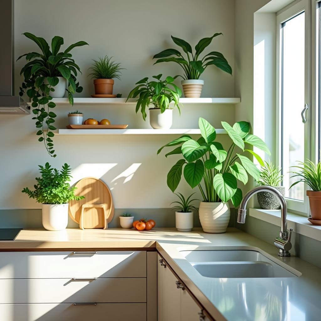 Before selecting plants, examine how much natural light your kitchen receives.
