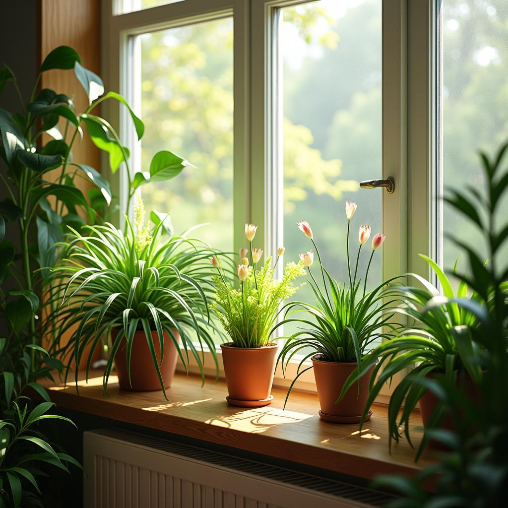 1. Spider Plant (Chlorophytum comosum): Effective in removing pollutants and likes indirect sunlight.