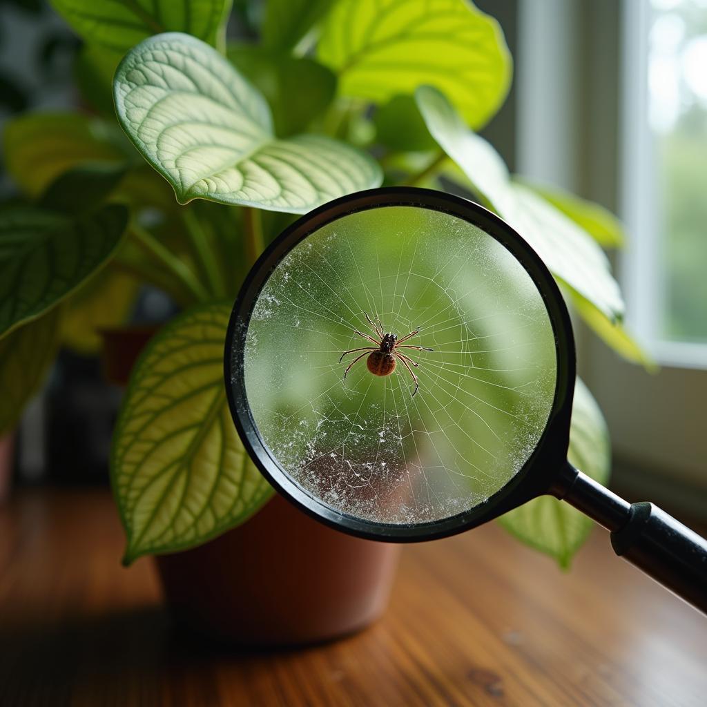Once you’ve recognized potential symptoms, you need to confirm whether spider mites are the culprits. Use a magnifying glass to inspect your plants closely.