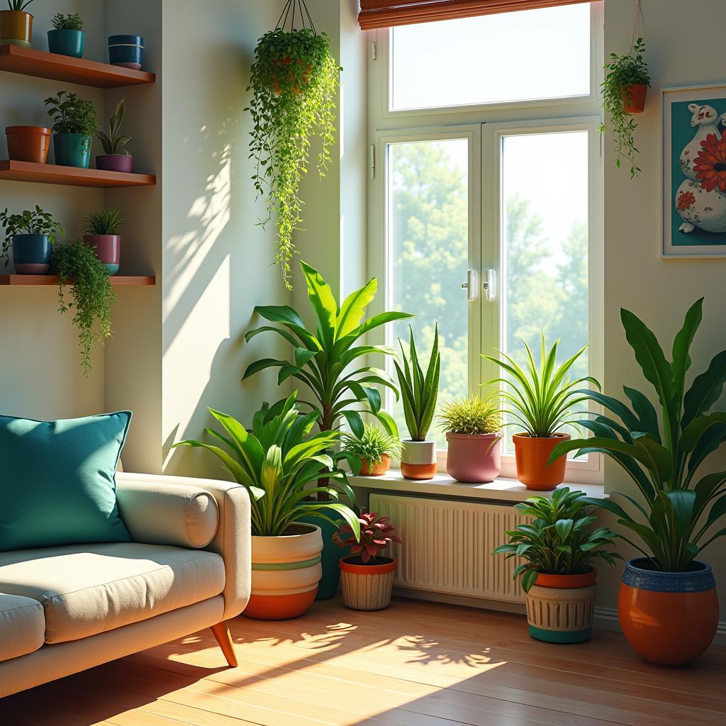 Select plants that suit your light conditions and the size of your space. Small plants like succulents or herbs thrive in limited light, while larger plants like snake plants require more sunlight.