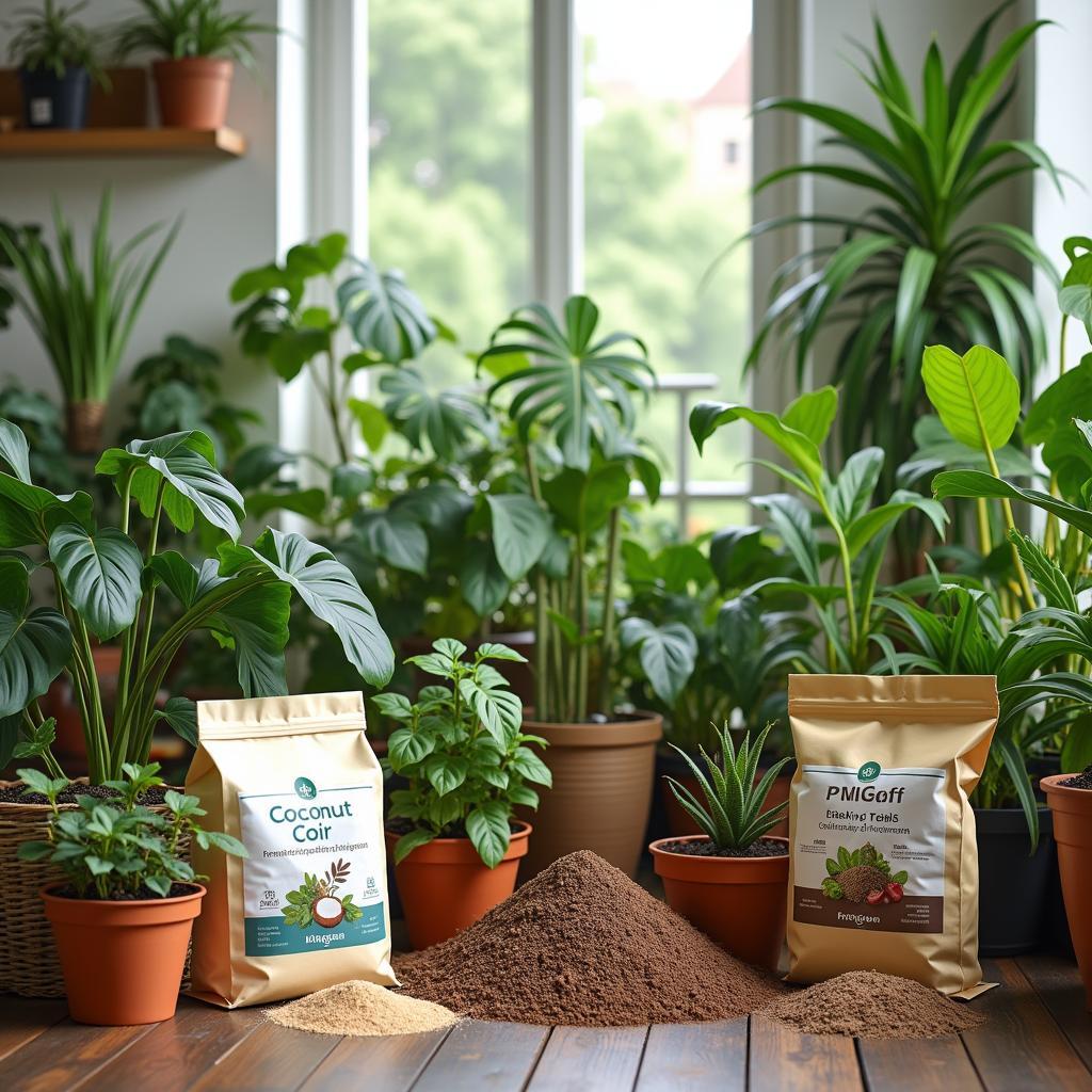 – Coconut Coir: Holds moisture well and encourages aeration.