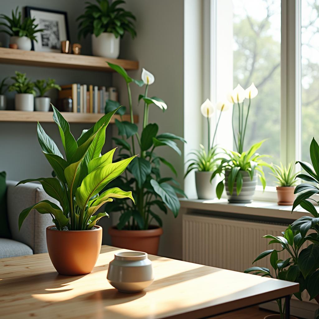 – Peace Lily: Known for its ability to absorb ammonia and benzene, also gives striking white blooms.