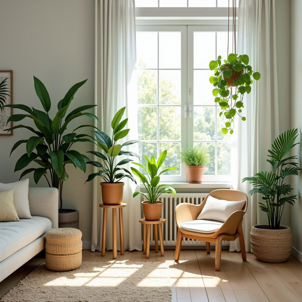 - Levels: Use plant stands or hang planters to vary the height and add depth.