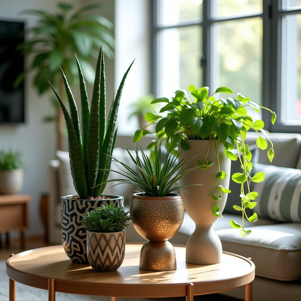 Tip: Choose pots that contrast or complement your plants’ colors and textures for added impact. A speckled pot can enhance the green of a snake plant, for example.