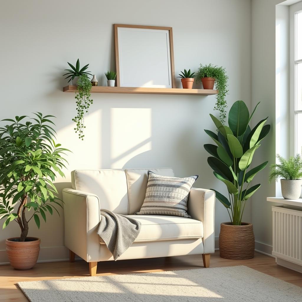 Create a plant corner with a stylish ladder shelf featuring small pots or hanging planters that can serve as both a statement piece and functional decor.